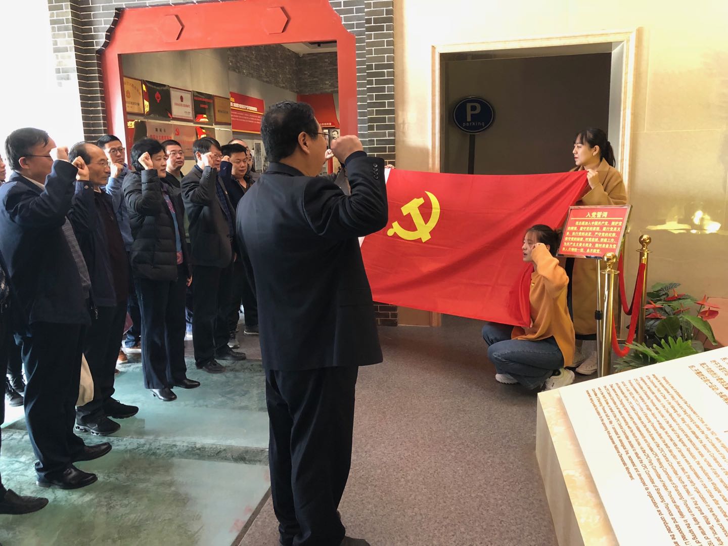 随后,大家前往鲁西第一党支部纪念馆进行参观学习。整个纪念馆共分为展厅、党支部创建人塑像及“理想信念之光”广场三部分。馆内陈列的照片、实物展品无不诉说着那段可歌可泣的鲁西北抗战史。在纪念馆内,在党总支书记齐登红的带领下,全体党员高举右拳,面对鲜红的党旗庄严宣誓,重温入党誓词,缅怀革命先烈,净化内心灵魂。