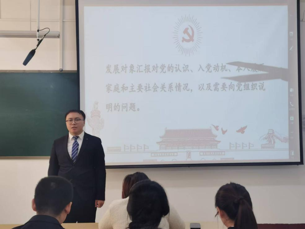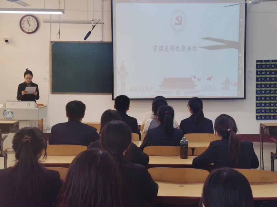 会议在庄严的国歌声中拉开帷幕。党支部书记张晓冬宣布会议开始,并指出本次会议主要讨论李跃腾等3位同志的发展问题。随后,李跃腾等3位发展对象依次上台,汇报了自己对党的认识、入党动机、本人履历、家庭和主要社会关系情况,以及需要向党组织说明的问题。他们的发言饱含对党的热爱,展现了新时代青年的风貌。经过充分的讨论,与会党员举手表决,一致通过,同意接收李跃腾等3位同志发展为预备党员。