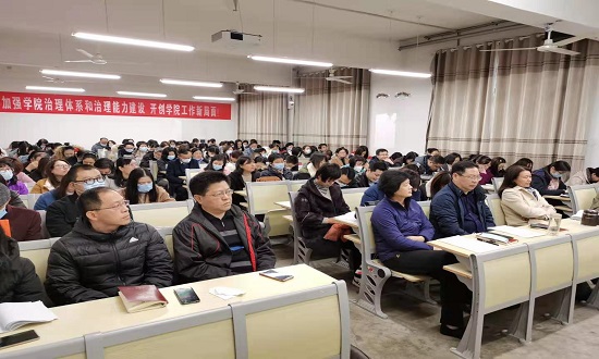 陈万会经理首先向全体教职工传达了王昭风董事长的讲话精神和公司的“十项重点任务”,并结合公司实际总结指出了公司在各个方面存在的短板和不足,明确了公司在2021年度的努力方向。陈万会经理指出,2021年度,公司将主要在一流学科、专业建设和申报、一级学科硕士点建设、学科方向、平台和团队凝练、专业外语、大学外语教学提升、高层次人才培养和引进、学科优先发展、课程思政建设及国际化办学等方面开展扎实有效的工作。陈万会经理要求公司全体教工要主动思变、应变、创变、求变,做到肩上有责、眼中有人、心中有事、脚下有路,凝心聚力、担当作为,为培养符合国家战略需求、地方区域发展需求的合格人才做出贡献。