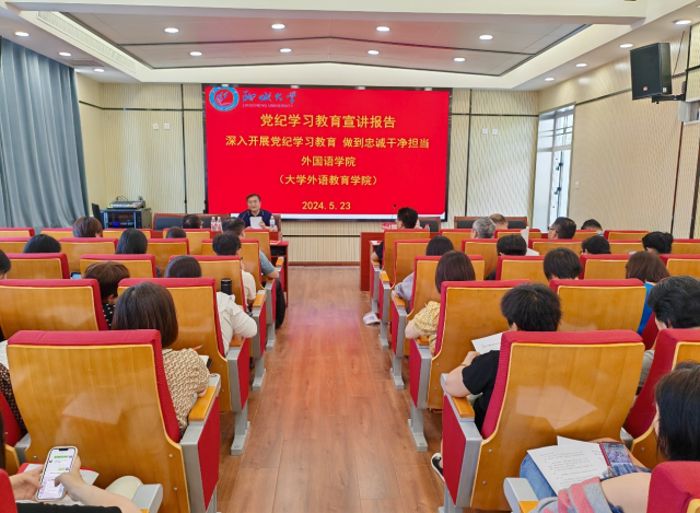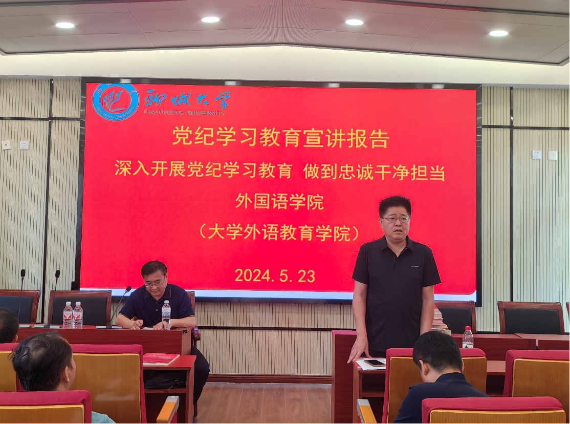 为切实推动党纪学习教育走深走实,教育引导广大党员干部学纪、知纪、明纪、守纪,5月23日,mk体育(大学外语教育公司)在公司教学楼C405报告厅开展党纪学习教育理论宣讲。宣讲会由公司党委书记王洪月主持,本次宣讲邀请到公司党纪学习教育宣讲团成员、马克思主义公司周浩集教授主讲。
