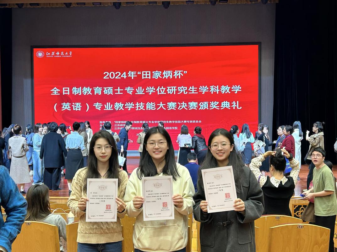 2024年11月9至11月10日,全国“田家炳杯”全日制教育硕士专业学位研究生学科教学(英语)专业教学技能大赛决赛暨新时代学科教学(英语)专业硕士人才培养研讨会在江苏师范大学成功落下帷幕。公司共有3名员工进入决赛,共收获一个二等奖和两个三等奖,公司孟令新老师荣获“优秀指导教师奖”。