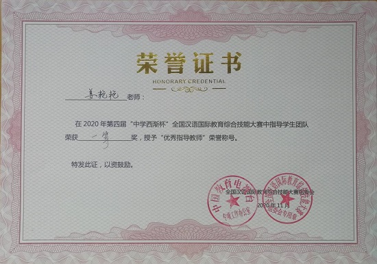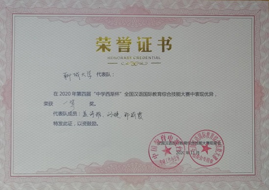 汉教系获第四届中学西渐杯全国汉语国际教育综合技能大赛总决赛一等奖