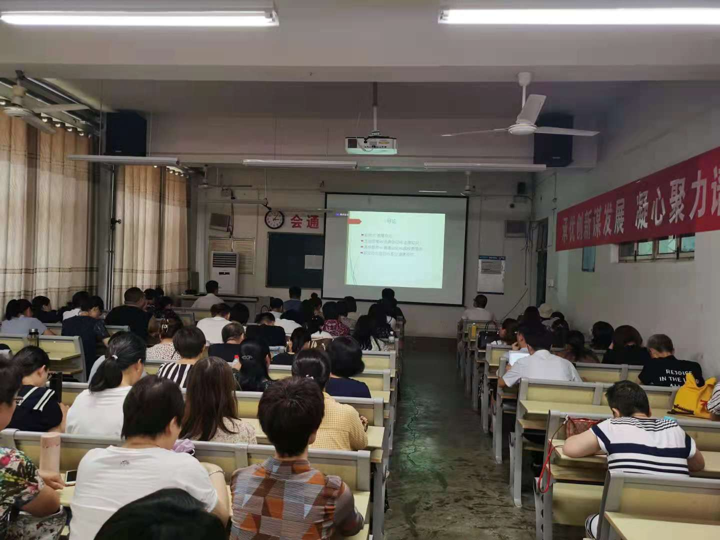 2021年7月8日下午3点,mk体育全体教工在1号教学楼A112室收看北京外国语大学姚金菊教授关于师德专题报告的在线讲解。