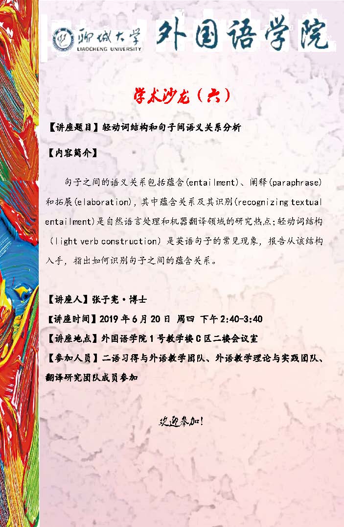 张子宪博士讲座——“轻动词结构和句子间语义关系分析”