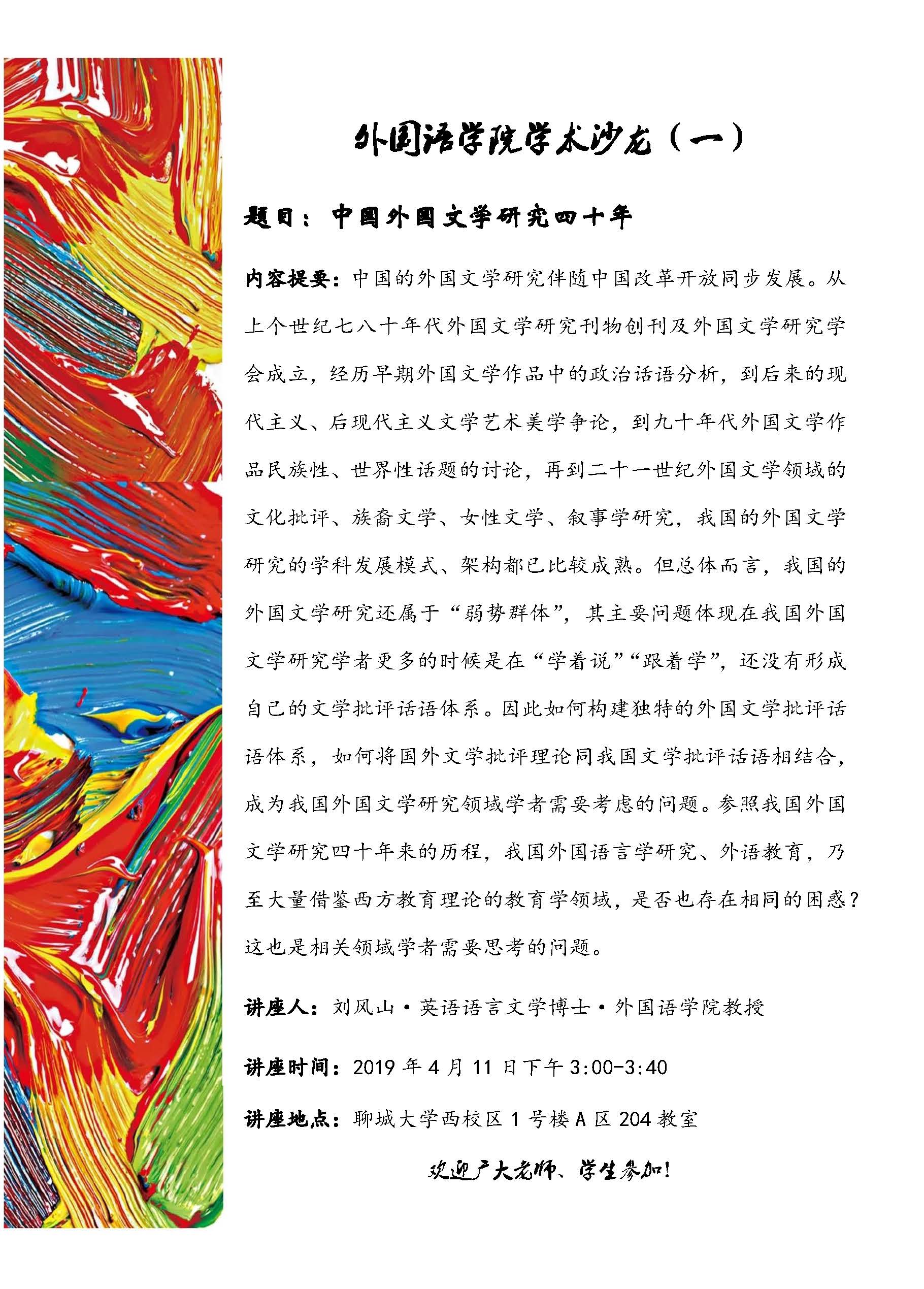 » 刘风山教授讲座——“中国外国文学研究四十年”