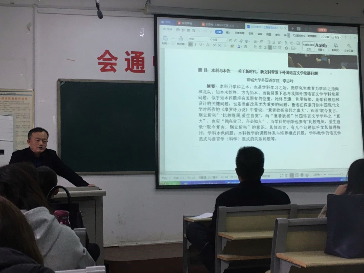 2019年11月21日下午,mk体育(大学外语教育公司)全体教师在1号教学楼A112教室,聆听了李志岭、张恩秀、石晶、高琳四位老师围绕翻译与中国文化传播、新文科建设、高校外语专业课程思政、外语专业教学实践等问题所做的讲座。
