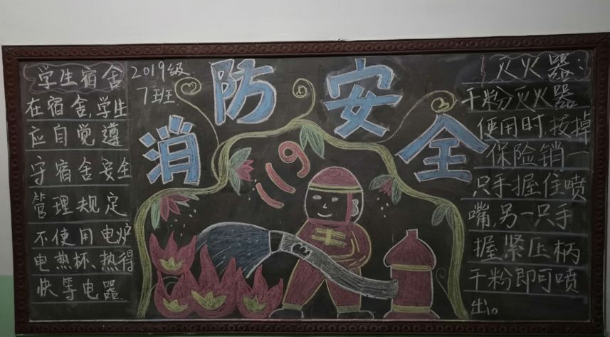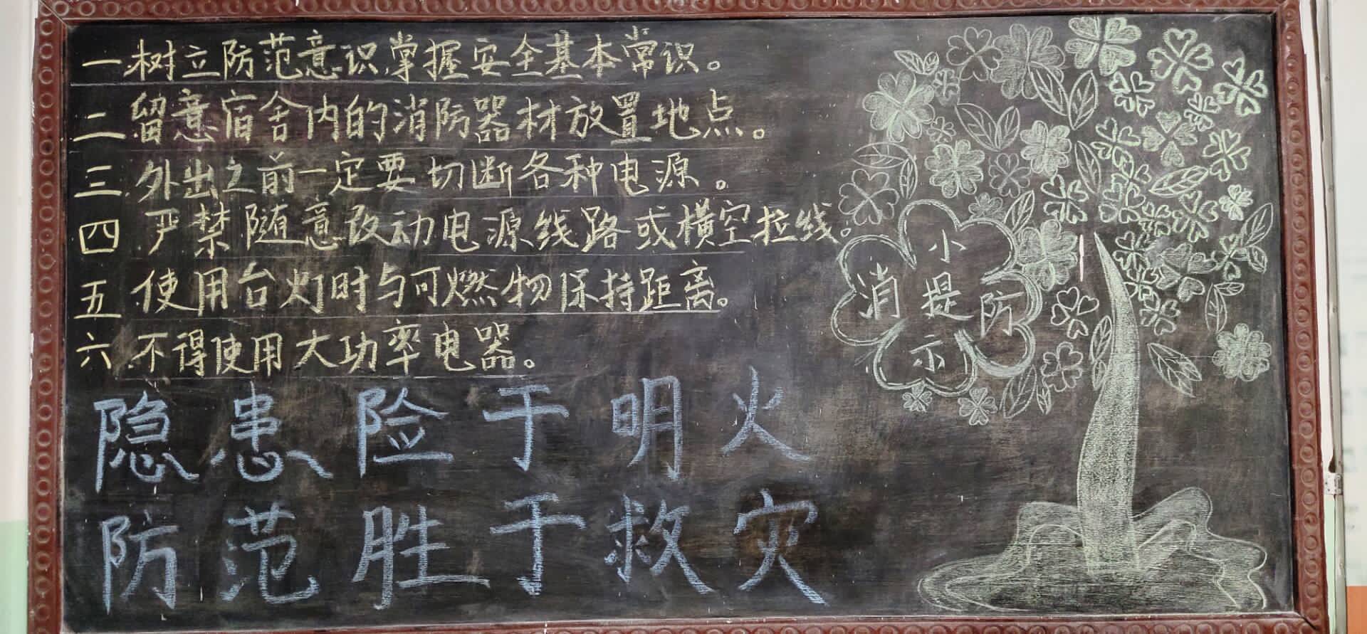 防范胜于救灾,责任重于泰山。员工宿舍是高密度人群居住的地方,防火安全显得尤为重要,为使员工认识到宿舍安全防火的重要性,主动学习消防安全常识,提高安全意识,增强抵御火灾的能力,公司充分利用宿舍大厅两块黑板以及公司教学楼内小黑板,面向2019级组织开展了以消防安全为主题的“消防常识进宿舍,平安相伴你我他——宿舍文化展板”活动。