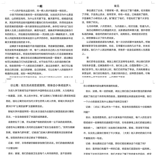 “妙笔生花述寓情”主题征文活动一经发布,便得到了广大同学们的积极响应,同学们以个人为单位,以公寓中发生的精彩故事为主线,凭借着积极饱满的心态与对宿舍深厚感情,下笔成章,行云流水,描绘出当代青年的宿舍故事。故事中有的是欢乐、有的是忧郁、有的是陪伴、有的是奋斗……征文《一起》中讲到“一个人的夕阳永远是冷的,而一群人的夕阳就是一场狂欢。”向舍友们表达陪伴是最长情的告白,生动展现出宿舍舍友之间相伴的温暖;《访公寓:观生活点滴显爱国情,做身边小事成追梦人》另辟蹊径,以采访的形式,生动形象地描写出宿舍的幽默日常,赢得广大同学们的喜爱。