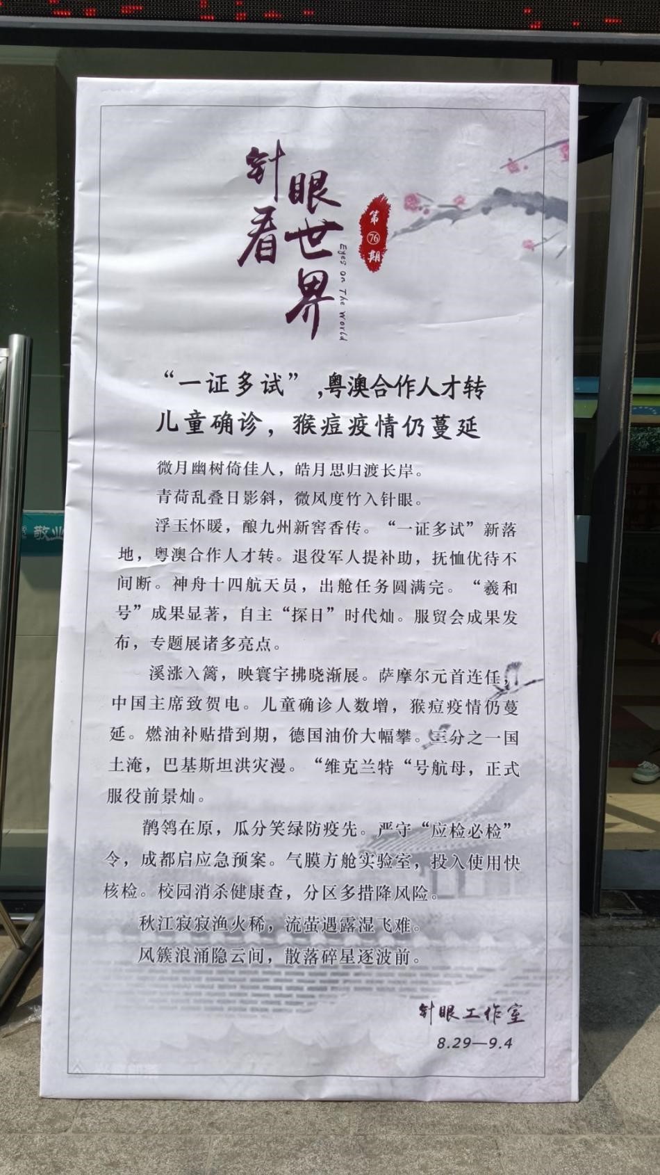 儿童确诊人数增,猴痘疫情仍蔓延。燃油补贴措到期,德国油价大幅攀。三分之一国土淹,巴基斯坦洪灾漫。“维克兰特“号航母,正式服役前景灿。