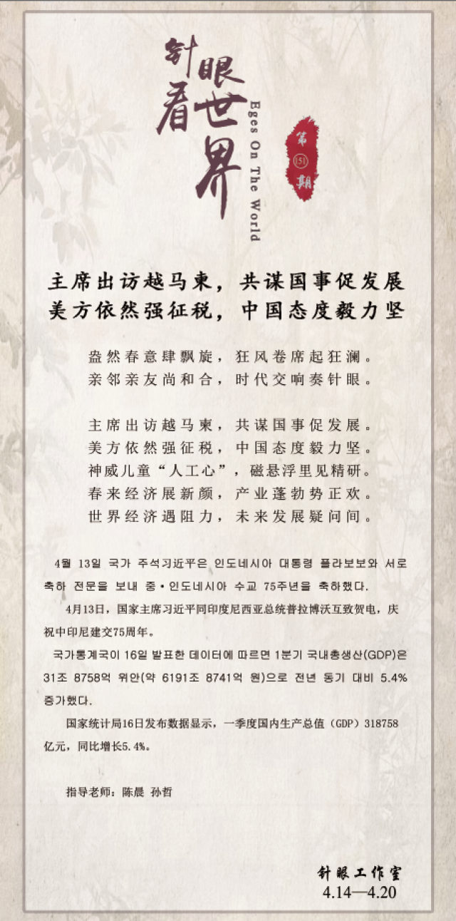 4월 13일 국가 주석习近平은 인도네시아 대통령 플라보보와 서로 축하 전문을 보내 중·인도네시아 수교 75주년을 축하했다.