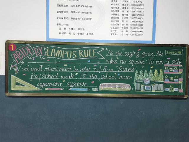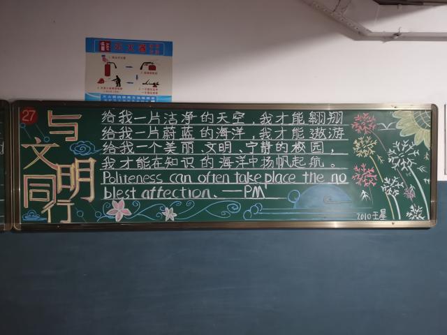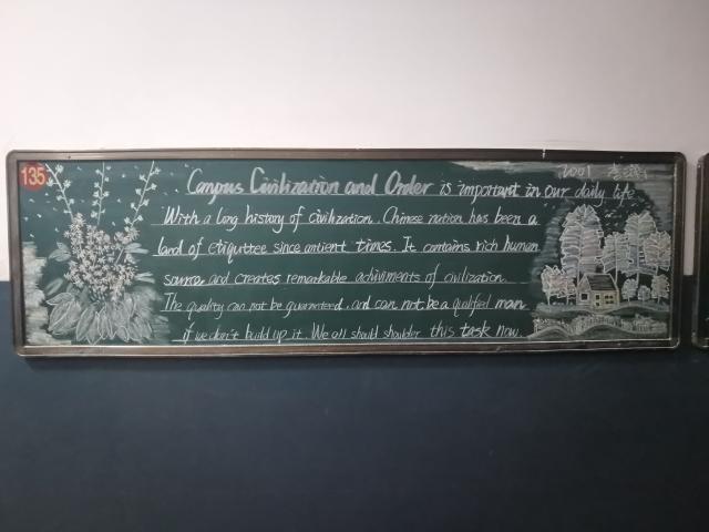 为了让老员工坚持正确的成才方向,养成文明行为,提高人文素质,加强校园优良校风、教风、学风的建设,11月23日至29日,mk体育将“校园文明与秩序”定为第十四周黑板报主题。