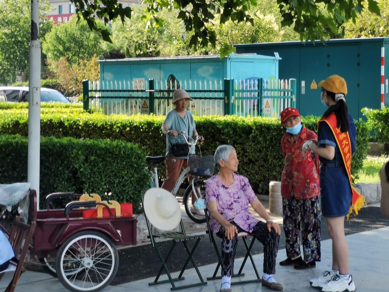 活动伊始,服务队成员们佩戴口罩,严格遵守疫情防控要求。随后服务队成员们进入社区对过往路人以及社区内的环卫工人进行采访,围绕是否有垃圾分类,垃圾分类的效果,社区环境感受等话题进行讨论和记录。同时服务队成员们还对社区建设进行宣讲,向人们科普当下开展“节能减排”活动的重大意义,并为社区成员指出,和谐绿色的社区的建设需要大家的共同努力。社区成员们纷纷表示,作为社区大家庭的一份子,今后定会为社区活动贡献出自己的一份力量。