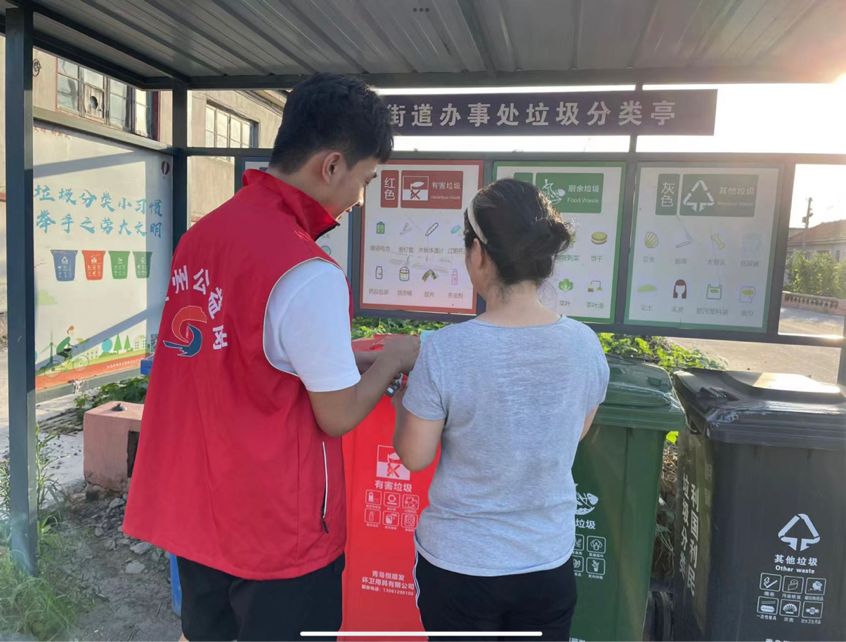 活动伊始,服务队所有成员佩戴口罩,严格遵守疫情防控要求。志愿队以建设绿⾊环保社区为⽬标,积极向社区的居民普及生态环保知识及绿色生活方式,同时通过发放宣传单、科普宣讲的方式,增强居民的环保意识,倡导社区居民为共同创建文明、温馨、优美的绿色家园而努力,旨在把环保理念传播到每一个居民群众的心中。最后,服务队成员们为居民们积极讲解垃圾分类的相关标准以及垃圾分类对于环保社区的重要性,积极引导居民进行垃圾分类的实践活动。