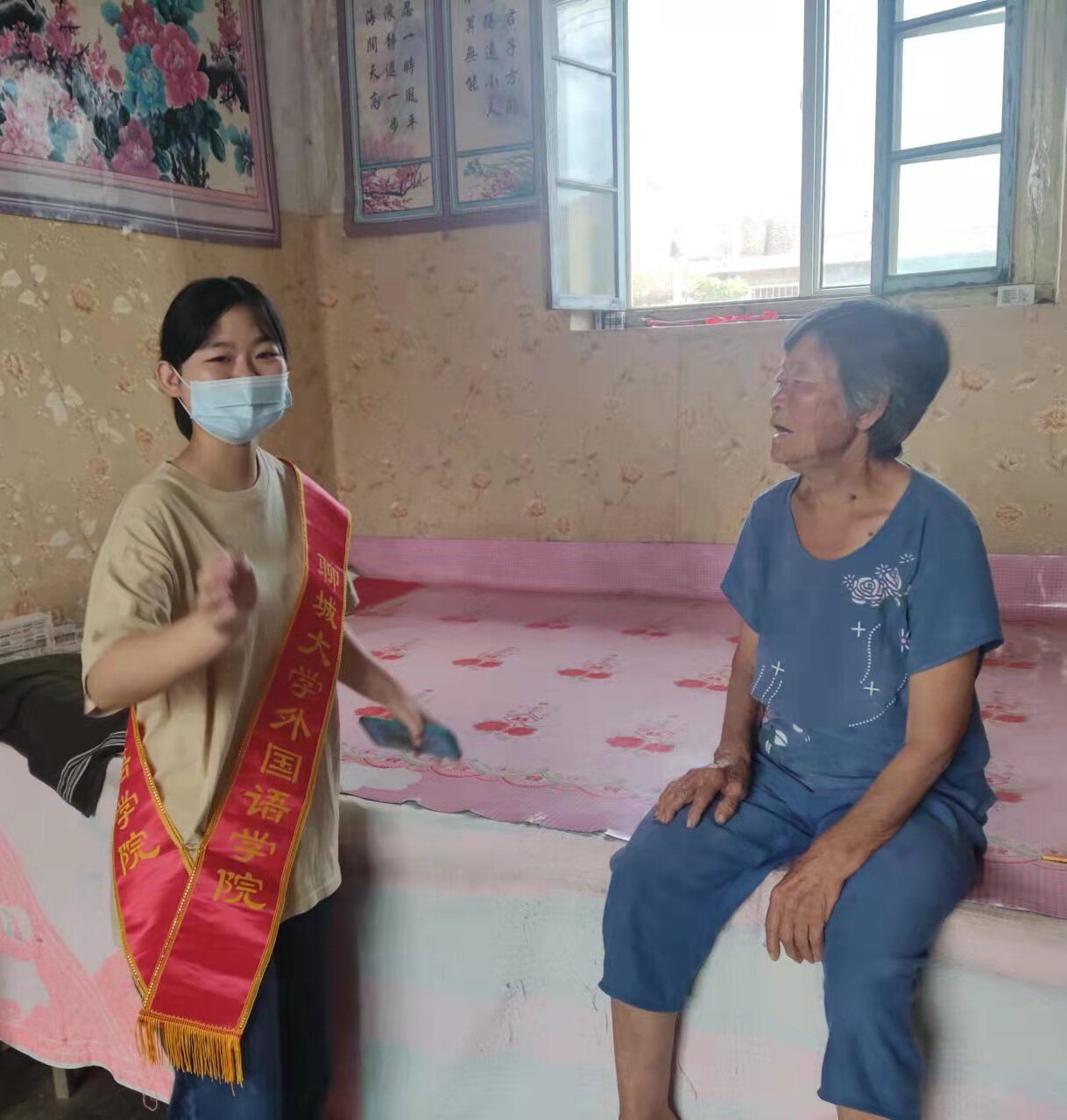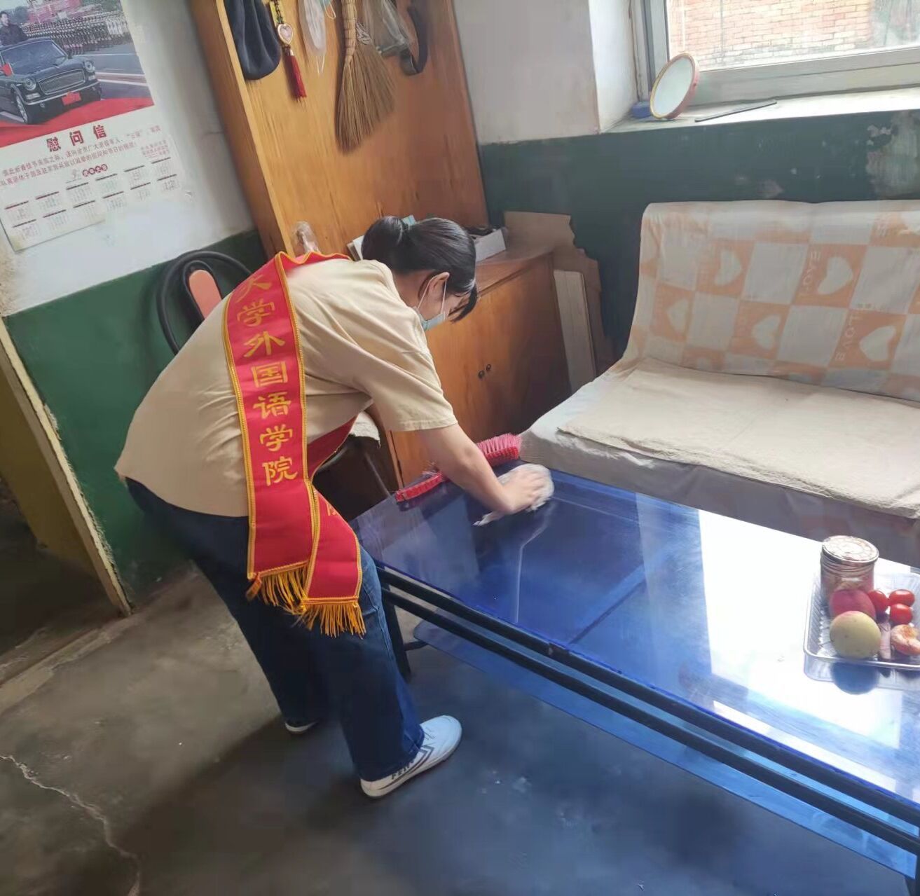 活动伊始,队员们带着自己的礼物和心意来到老人们家中,与老人的交谈过程中,队员们不仅讯问到了他们的健康状况以及生活起居,还倾听老人们的心理诉求,了解到老人们的兴趣爱好,与老人一起制作手工编织等活动,尽自己的可能去带给他们欢乐,带给他们祝福。队员们带来了一份份自制的慰问小礼物把浓浓温暖和深切关怀送到老人身边,整个家中洋溢着温馨、祥和的气氛。服务队的队员们观察到有许多行动不方便的老人,便主动帮助这些老人打扫卫生、整理房间,使本不宽敞的房间变得整洁又温馨。整个活动的过程中,队员们与老人们相处的十分融洽。