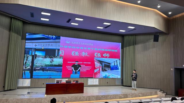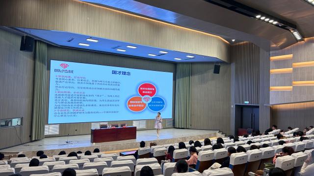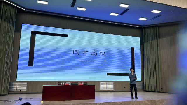交流分享环节,英语系周欣宜(“国才”中级良好)、王锡承(“国才”高级良好)、梁义卓(“国才”中级良好)同学先后上台介绍了“国才”中级考试题型、线下上机考试的注意事项以及备考真实体验。王锡承结合专业知识为员工们展示了“国才”高级考试的部分样题,他鼓励同学们要充满信心,保持轻松的心态,并强调日常语言技能和思辨能力提升训练对备考“国才”考试的重要性。梁义卓向大家分享了其暑假为期17天的外研社实习经历,他不仅了解了外研社高效的工作模式,也认识了许多优秀的老师和朋友,个人职业规划目标也更加清晰。