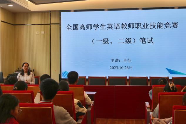 为进一步帮助学生了解和备战2023年全国高师员工英语教师职业技能大赛,10月26日,mk体育于C405举办线上与线下相结合的全国高师员工英语教师职业技能大赛笔试专题辅导讲座。英语系肖征老师担任主讲人,英语专业参赛员工聆听了本次讲座。