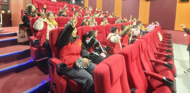 孩子们到达中影国际影城后,志愿者们分为前中后三个点位带领他们有序进入影院、维持秩序。孩子们落座后,志愿者们坐在每一排的边缘位置以便及时关注孩子们的情况。孩子们注意力易分散,观影时易大声喧哗、跑动,甚至哭闹,对此情况志愿者们耐心劝导,及时制止不良行为,确保观影的基本秩序,防止他们跌倒或发生其他意外。活动过程中,各位志愿者的有效组织与高效协作使观影井然有序、顺利结束孩子们积极配合,收获了良好的观影体验与难忘的回忆,他们向志愿者们表达了真诚的感谢,同时对电影中的情节也感悟颇深。