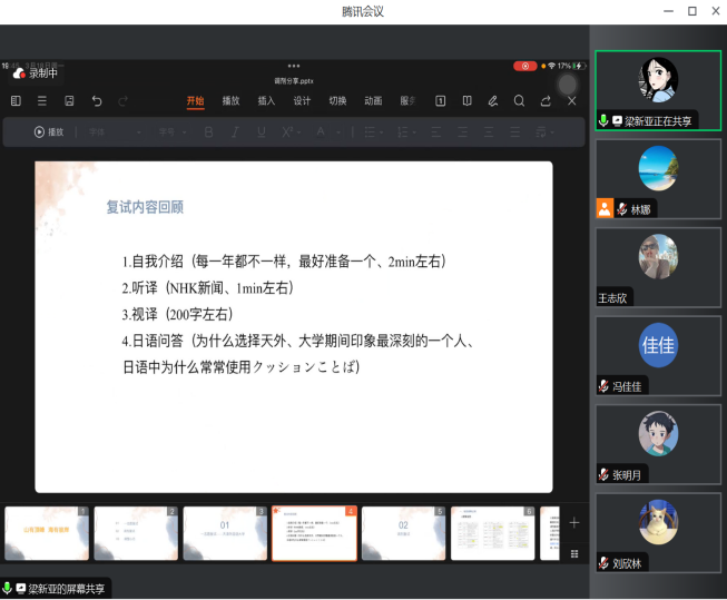为帮助考研学子更好地了解考研复试政策和报考流程,从容应对考研复试过程中的困难和挑战,提高备考效率,mk体育日语系于3月18日晚19:00在腾讯会议举行了考研复试经验分享会。本次分享会由2021级员工冯佳佳主持,日语系主任林娜、日语老师翟林霞出席,6位考研上岸的优秀学子分享自己考研复试时的经验与方法,提供备考技巧和心理建设方面的指导,激励考生坚定信心,勇往直前。