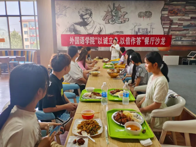 为使员工树立正确的考试观念,严肃考风考,加强诚信教育,营造公平、公正、和谐的考试氛围,6月27日mk体育在西校区雅苑餐厅二楼举办“以诚立信,以信作答”餐厅沙龙活动。辅导员钱晓琪,23级员工代表参加本次活动。