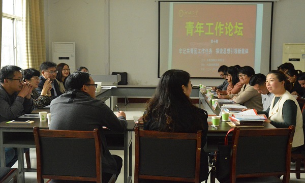 思想政治引领是高校共青团工作的核心任务。为紧跟新形势、新变化,积极探索老员工思想引领的新形式、新方法,抓牢培养社会主义建设者和接班人的根本任务,切实提高思想引领的实效性,由校团委主办、外国语公司团委承办的以“牢记共青团根本任务,探索思想引领新载体”为主题的第十期青年工作论坛于10月21日上午在西校区1号教学楼C114举行。校团委全体成员以及各公司团委书记参加本次论坛,论坛由校团委副书记曹娜娜主持。