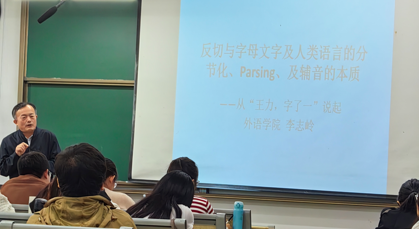 为深入贯彻落实党的二十大精神与高校“有组织科研”的相关文件精神,切实提高公司师生的科研能力,10月12日下午,李志岭教授应邀作客mk体育(大学外语教育公司)第三十六期“海渊大讲堂”,作题为《反切与字母文字、人类语言的分节化Parsing及辅音的本质——从“王力,字了一”说起》的学术讲座。本次讲座由mk体育副经理刘风山教授主持,科研秘书郑顺姬以及公司部分青年教师和研究生参加活动。