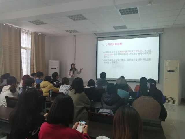 此次讲堂活动主要分为三个板块,一是对心理委员的起源的介绍,二是对心理委员的角色定位问题的讲解,三是对班级心理委员的工作要求。会议初始,郑嘉会老师以亲切的话语迅速将同学们带入角色,让同学们体会到了心理委员责任之重大。之后郑老师又从心理委员的权利、具体职责、工作内容和工作技巧等多方面给同学们提供了具体的建议,如建立心理档案、书写心理日志等,令大家受益匪浅。活动期间,郑老师以妙趣横生的语言,有趣的工作经历和那些让人深感痛心的案例,让同学们深入了解了心理委员的工作要求和技巧,为同学们进一步实践打下了坚实的基础。活动最后,郑老师还为大家分发了计划书,为心委们今后工作的整体规划提供了有力的指导。