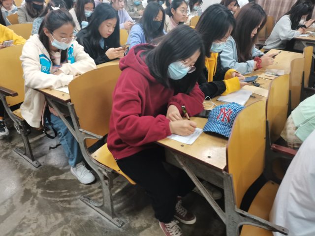 此次活动共分为三个环节。第一环节组织者邀请了参与活动的同学们以匿名的方式将自己的疑惑和问题写在纸上并有秩序地放入提前准备好的纸袋当中。纸条收集完毕后,活动进入了第二个环节。组织者从中抽取疑惑难题由心理部成员和共同参与活动的其他同学一同解答。在这个互帮互助的过程中,大家纷纷敞开心扉,积极为他人出谋划策,教室里充满了欢声笑语。活动的最后,在轻快的音乐中,笔尖在纸上飞舞着,同学们手写了一封给一年后自己的信来表达此时此刻的心声。