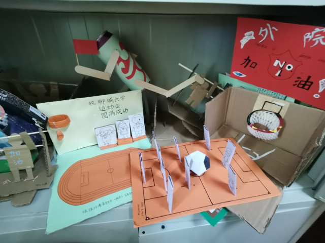同学们踊跃报名参加,并充分发挥自己的想象力进行艺术创作,以运动会为主题,在创作过程中将自己的内心所想与对运动健儿的鼓励寄托于灵活的手指,最后以手工作品的形式展现出来。本次活动中,同学们各尽其能,“奔跑的易拉罐、举杠铃的小人、操场上的足球场、冠军奖杯、飞翔的运动鞋”等作品惟妙惟肖,从中也折射出同学们积极向上的阳光心理。大家通过手工作品的制作来传递生活中细碎的美好,让同学们在这繁华的快餐生活中也寻得一抹静谧。