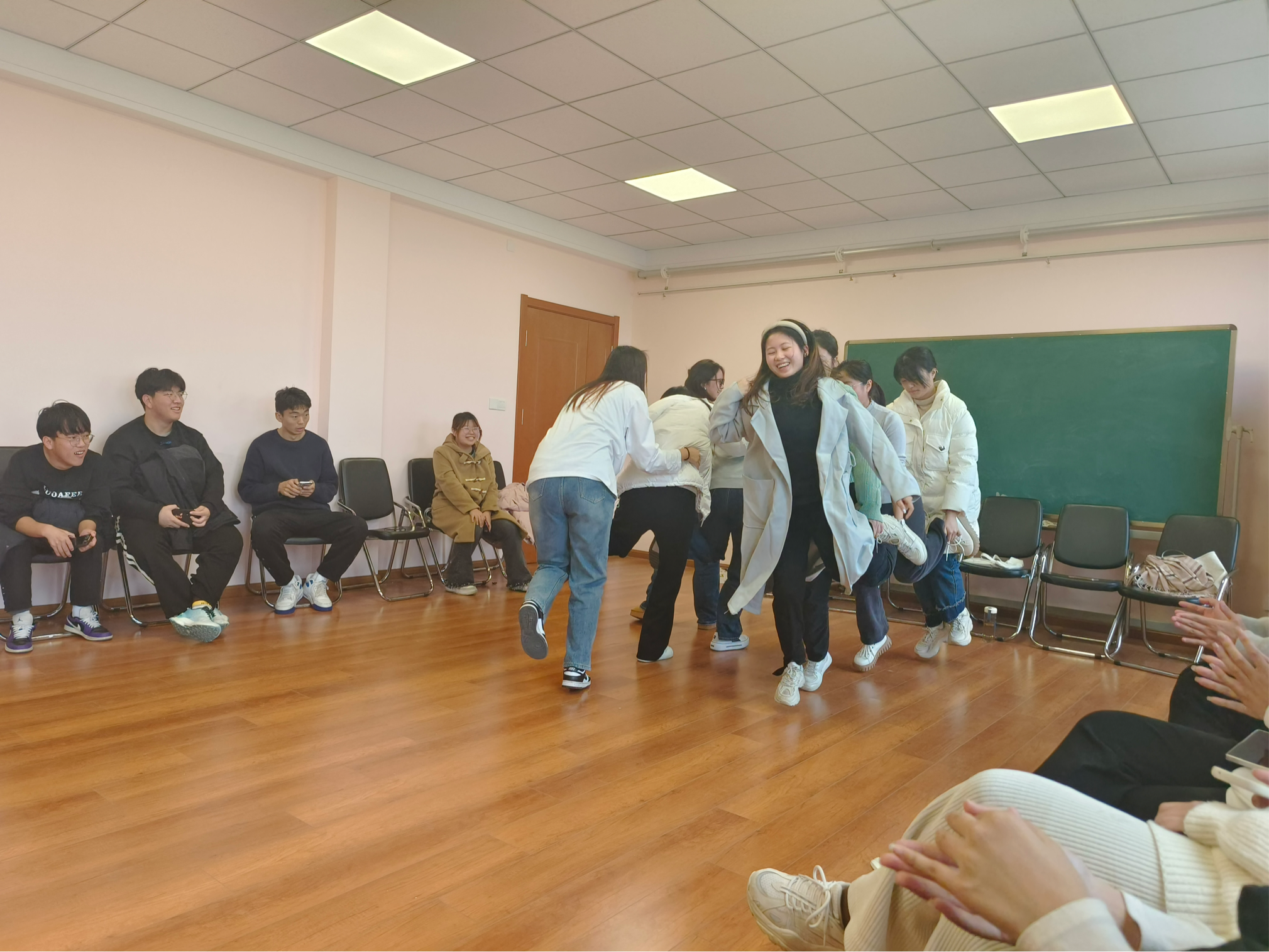 此次活动分为三部分,首先由班团商讨活动主题,确定活动方案并进行预约。接着在学姐的组织下,同学们进行了有关“团结合作”主题的一系列游戏,期间同学们欢声笑语连连,现场十分热闹。最后,同学们发表了游戏后的感悟,在游戏中明白了团体对于个人的重要意义,并合影留念,记录珍贵的记忆。