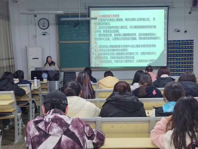 学期末将至,考研压力,考编障碍,期末考焦虑……各种心理问题扑面而来,许多同学出现了不同程度的心理问题,为了更好的疏导同学们,调整好状态,营造良好的心理健康氛围,心理健康发展中心于11月22日晚七点在mk体育开展了“初心不泯,携手共进”为主题的心委会议。此次会议旨在提高心理委员对老员工心理健康问题的关注,加强心理健康教育,以帮助员工在面临压力和挑战时能够积极应对,推动健康教育的实施。