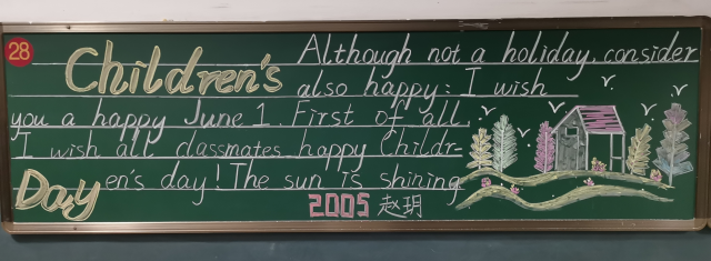 世界上许多国家都将6月1日定为儿童的节日,尤其是在社会主义国家。六一儿童节即将来到。板报运用粉色、橙色、绿色等多种色彩,勾勒出了五彩斑斓的儿童世界。醒目的Children's Day彰