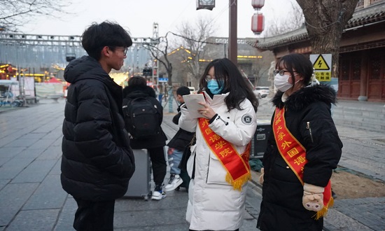 此次活动以服务队内部学习十九届六中全会精神为切入点,由两名队员商讨制作夸夸板,目的是为后期活动的继续开展做好知识和用具的双重储备。服务队其他成员在公共场所对过往行人进行街头采访,并向他们宣传十九届六中全会精神。在采访问答的过程中,无论是在外求学归来的员工,还是当地的居民,都真切表达了对祖国、对母校的热爱,展现出浓烈的家国情怀。在活动最后,服务队成员就此次街头采访抒发了自身感想,做好总结归纳并拍照留念。