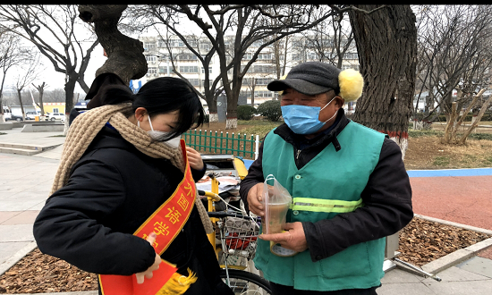 活动开始前,服务队同学提前了解了环卫工人的每天工作日常,环卫工人春去秋来的风雨无阻,他们活跃在城市的大街小巷,是美丽城市建设的主力军,被称作“城市的美容师”。活动过程中,通过与工作人员的交流,队员们了解到他们黎明即起,用扫帚和铁锹演奏城市的晨曲,而且由于工作时间特殊性,早餐成为他们的一大难题,工人们的经济状况也不太景气。为了切实解决好环卫工人的的早餐问题,权益服务队在聊城公园开展“免费送早餐”活动,给环卫工人们送上热粥热饭,将冬日里浓浓的温暖与关怀送到环卫工人们身边。活动接近尾声之际,队员们用一张张卡片写下了对环卫工人的敬意与感激,并表示会用实际行动将这份温暖传递。