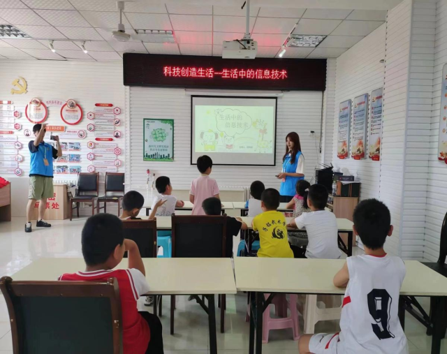 在山东省威海市乳山市怡园社区,服务队成员对当地中小员工进行科技、信息技术等知识的培训和教育,向孩子们宣传文明上网的理念及如何认识和运用科技,以增强孩子们的对纷繁复杂的网络信息的思考能力和辨别能力。
