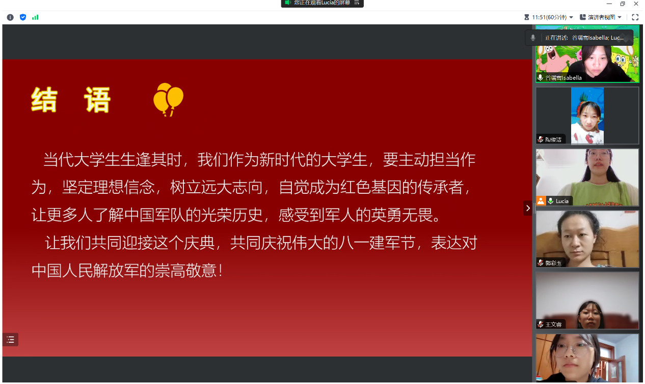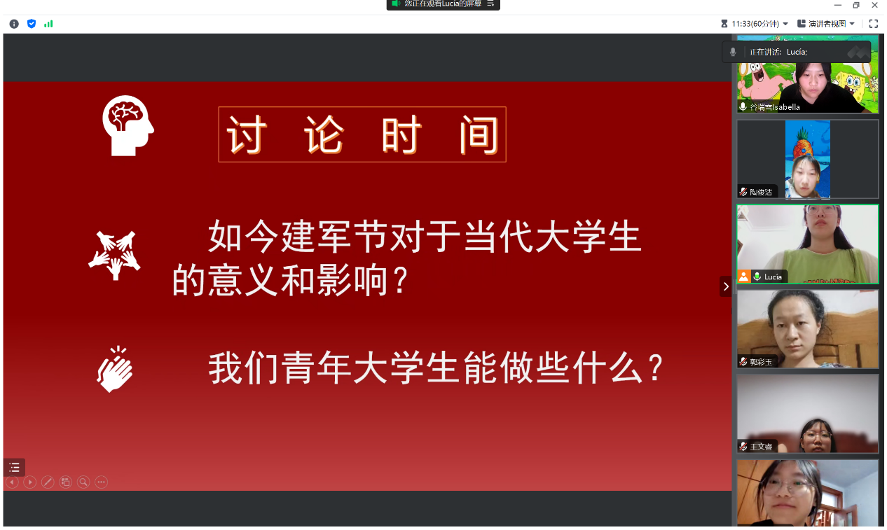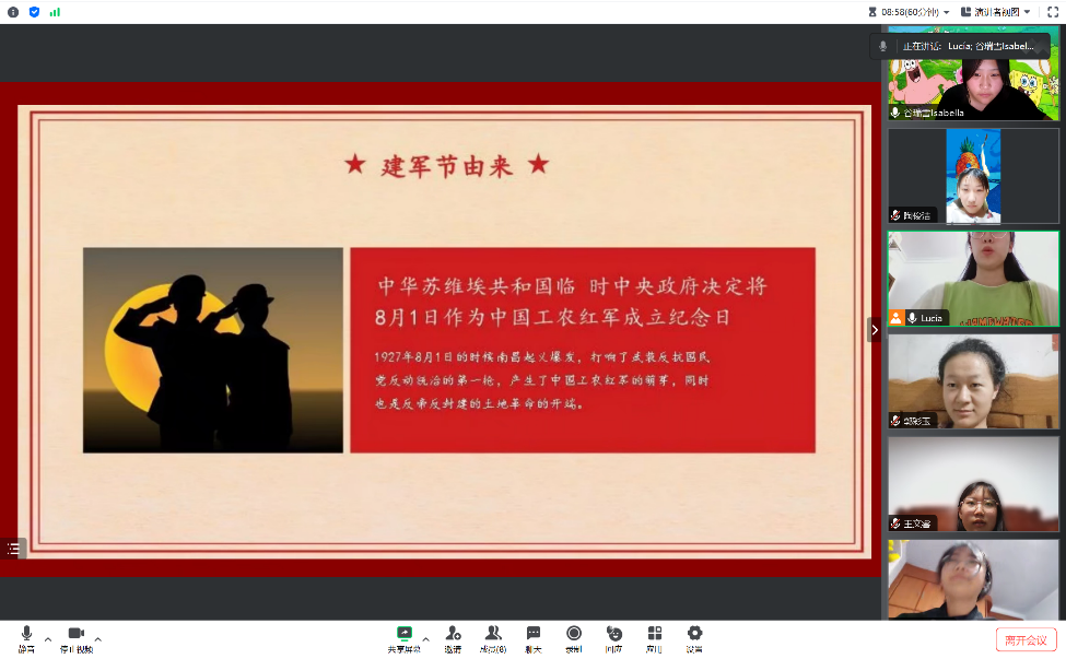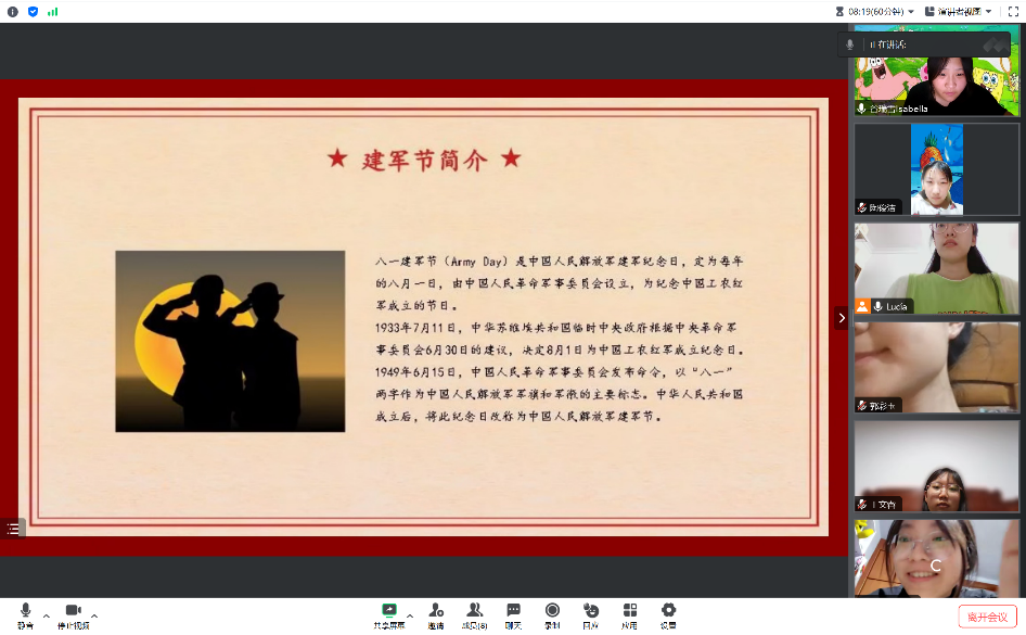 通过线上会议的形式,同学们了解了八一建军节的基本知识和由来。