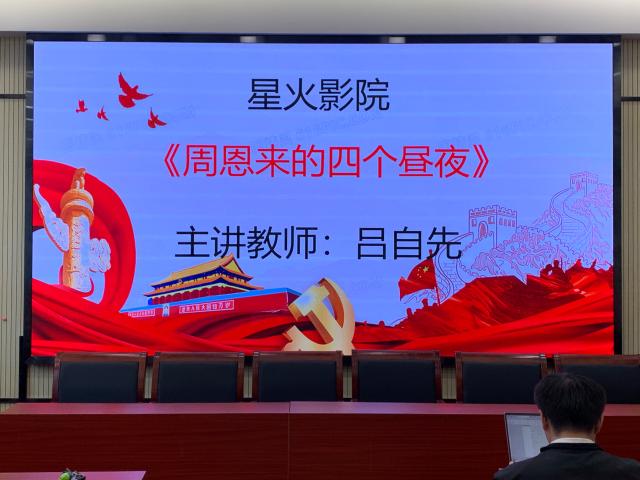 观影开始前,吕自先老师讲述了自己对影片《周恩来的四个昼夜》的感想,指出员工要将爱国爱党情怀同自身的责任使命相结合。老师提到,作为新时代青年,员工应有自己的梦想和志向,承担起历史和时代赋予的责任,为社会的发展和进步贡献智慧和力量。他鼓励同学们要有理想信念,希望同学们不断提升自己,增强责任感。随后放映影片《周恩来的四个昼夜》,同学们回顾伟大历史,思考党的精神。该影片兼顾了思想性和观赏性,既描写了真实的时代背景,又发出了对历史的思考之音。观影结束后,同学们积极讨论,纷纷表示要不负时代使命,敢于担当,积极作为,用实际行动为实现中华民族伟大复兴的中国梦贡献力量。