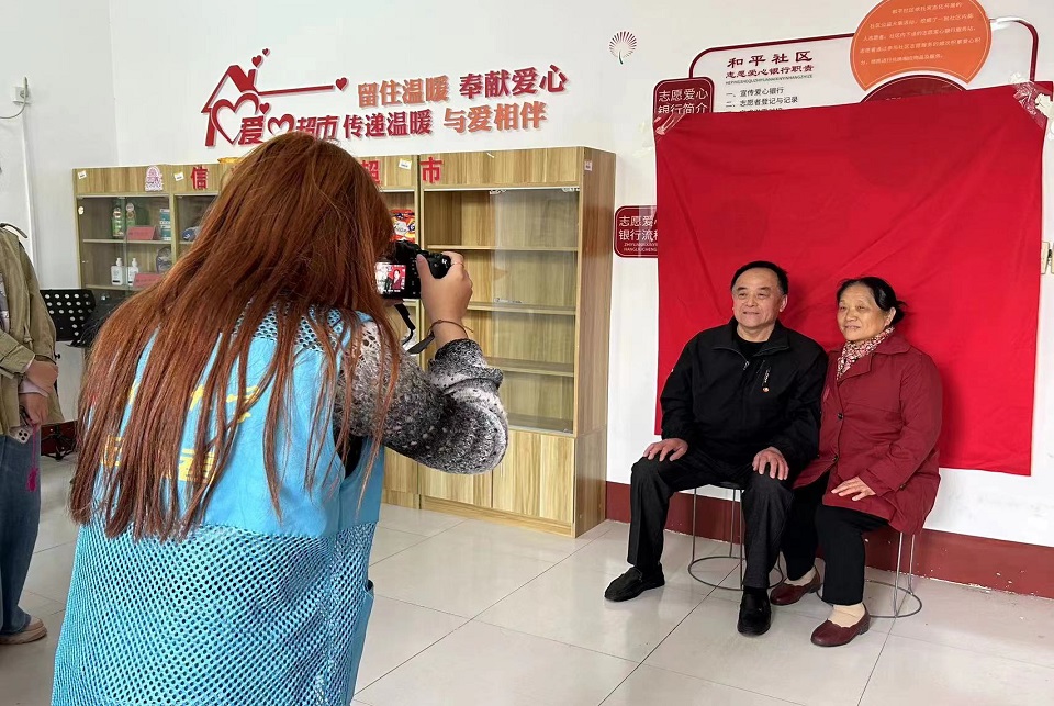 上午九点,志愿者们早早来到社区服务中心搭建场地,准备拍摄所需的背景、道具和摄影器材,热情引导并帮助老人们登记、化妆、换衣服、拍照。拍摄过程中,志愿者细心地为老人调整坐姿、整理服装,用热情和体贴缓解了老人们紧张的情绪,一张张洋溢着幸福的脸庞被留在快门声中,记录下了几十年的感情。其中,一对老人已经结婚四十周年,其余老人的结婚时间都在五十周年以上。志愿者们表示,希望通过本次活动使更多人关注老年人的生活和需求,为他们提供更多的帮助和支持。活动结束后,老人们纷纷表示,这次拍摄让他们重温了当年的美好时光,切实感受到了来自社区的关怀和温暖,感谢社区工作人员和志愿者的付出,期待他们在未来带来更多惊喜。