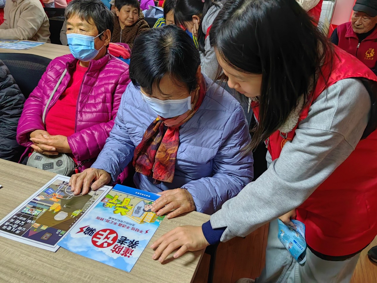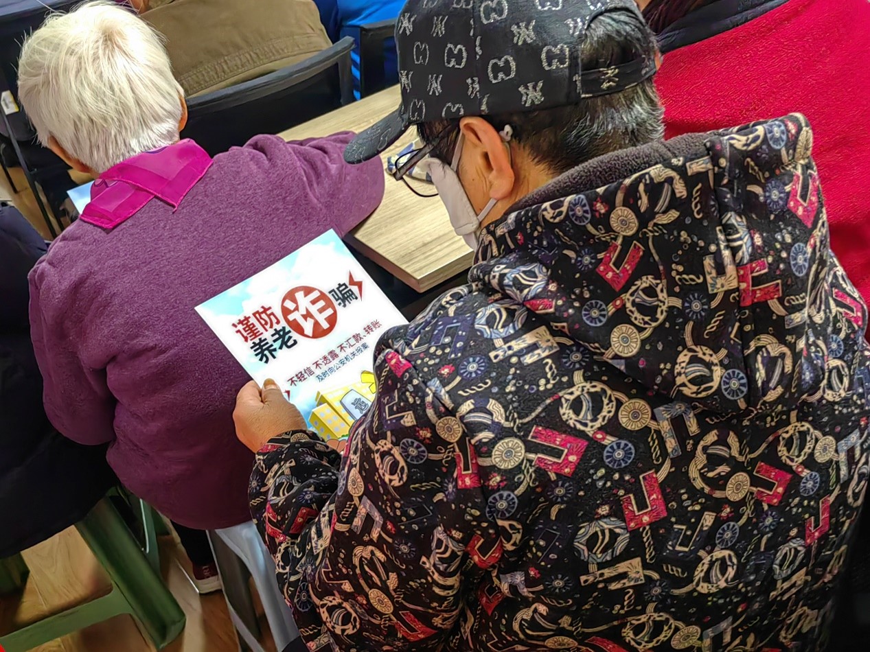 活动伊始,志愿者们以PPT宣讲,发放防诈骗宣传页的方式向老人们科普防骗知识,提醒各位老年人不要点击不明网络链接,不轻信陌生人的电话和短信,并告知老年人不要向陌生人透露自己的身份信息以及银行卡密码,引导老年人辨识骗局,倡导老年人坚决抵制网络诈骗避免成为网络诈骗的受害者,守护个人财产安全。