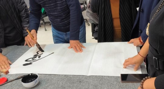 在此次活动中,志愿者与社区的老人们汇聚一堂,同时,社区还请来了邱振国老先生,聊城著名书法家,让他与其他老人们一起给志愿者们讲解各种有关毛笔字笔画、结构和笔法的知识,并耐心指导志愿者们写字。志愿者们跟随聊城市大书法家邱振国老师的脚步,认真学习了如何书写毛笔字。
