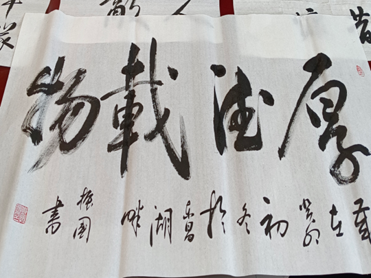 看向年轻的志愿者们时,邱老先生眼里满是慈爱与欣喜,他在纸上写下“厚德载物”,以此来表达自己对后辈的勉励。