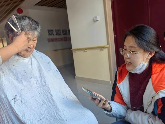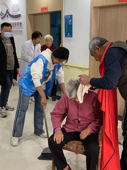 活动准备阶段,活动负责人积极联系社区,双方讨论过后,最终确定了以协助为老人剪发,帮助打扫卫生兼以与老人聊天、了解老人生活、欢愉其心情的方案。活动伊始,志愿团队跟随社区负责人到达幸福食堂,团队成员分成两队进行志愿活动。活动过程中,成员们见到了一群可爱的老人,老人们耐心地等待着剪发。成员们与他们积极地互动,从积极为老年人唱红歌表演节目到与社区老人乐话家常,从年轻时的意气风发聊到现在的子孙满堂,老人们盈着张张笑脸。团队成员之间认真配合,打扫卫生一丝不苟。