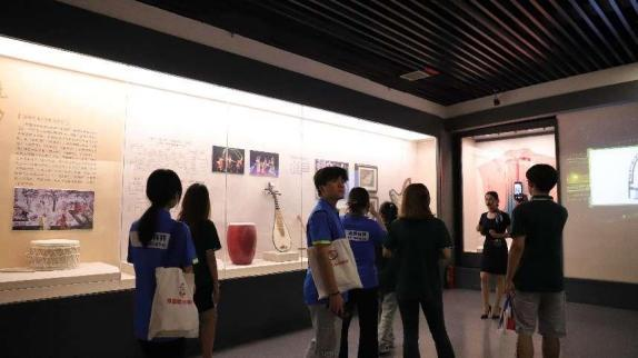 (图为志愿者在博物馆内参观学习丝路历史文化)