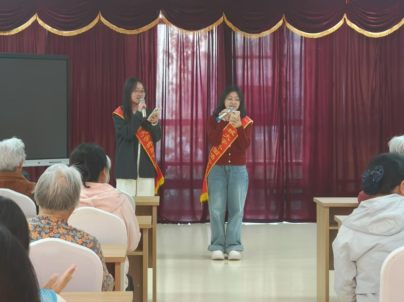 踏着晨光,志愿者们便带着满溢心意的节目,抵达养老院。他们与老人们亲切交谈,深入了解老人们的日常点滴,用温暖的问候和周到的服务,勾勒出一幅幅温馨和乐的画面。老人们脸上绽放的笑容,满是真挚的欢愉。“歌舞寄情暖人心”,志愿者们呈献的文艺节目精彩纷呈。《最炫民族风》的活力旋律,《荷塘月色》的悠扬婉转,一首首经典老歌,引得老人们掌声雷动,喝彩不断。志愿者们还深情朗诵诗篇,为老人们的时光增添了一抹诗意。至此,活动在欢声笑语中落下帷幕。
