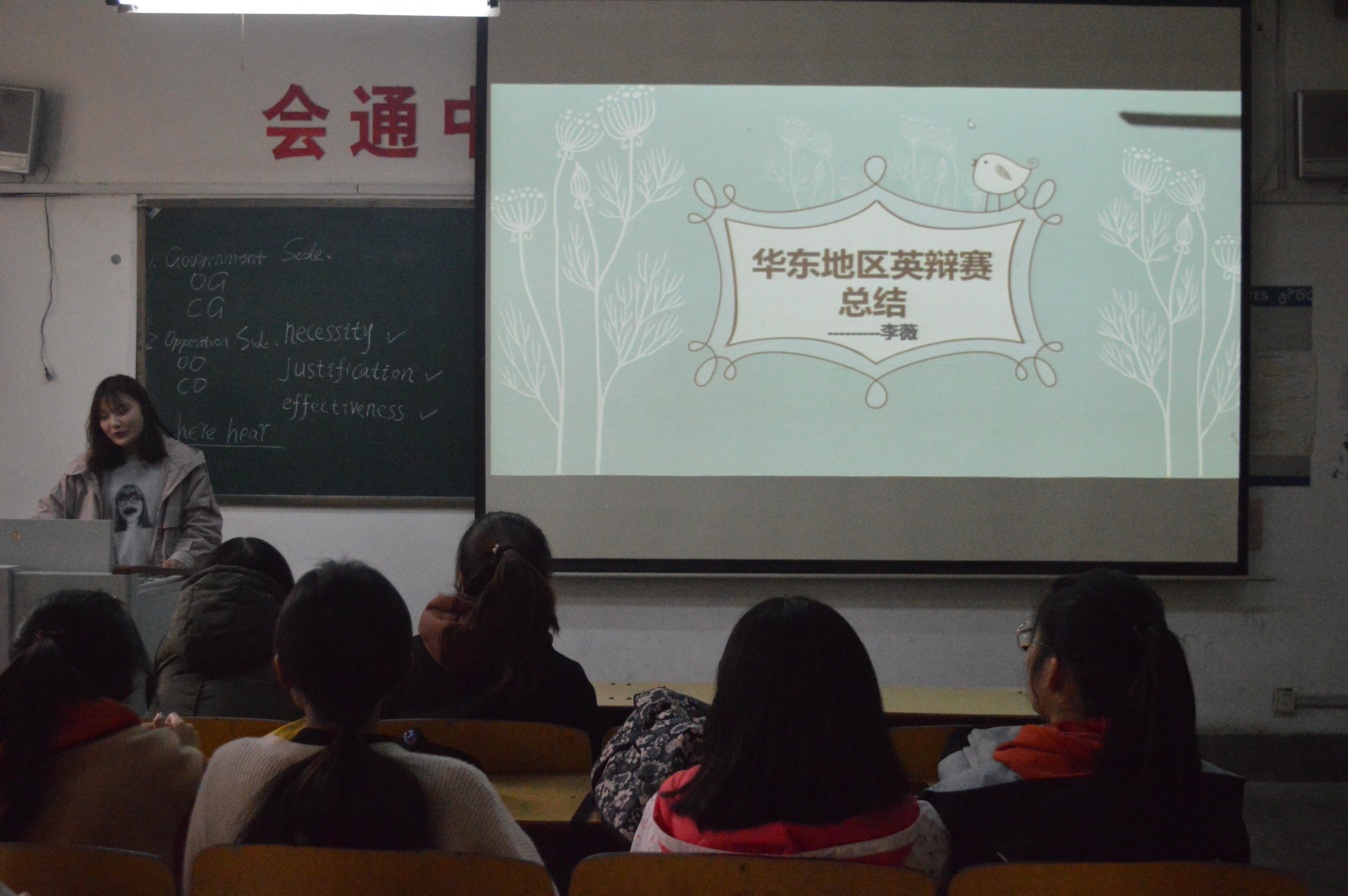 经验是真知与灼见之母。为分享交流参赛经验和心得,进一步促进教学工作,4月11日下午,mk体育在A104教室举办了召开“‘外研社杯’老员工英语辩论赛参赛与观赛交流会”,孙毓、郭晓睿、李薇、杨紫四位同学以及指导教师张慧在会上做参赛情况分享。