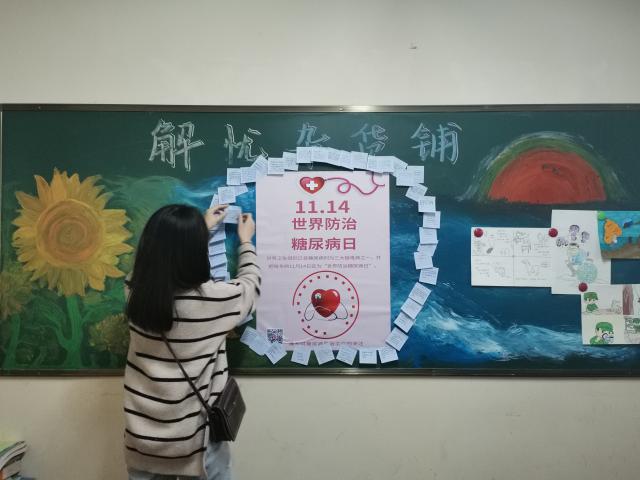 糖尿病被称为现代疾病中的第二杀手。目前,糖尿病发病率逐年上升,糖尿病发病呈现出扩大化和年轻化趋势。 2019年11月14日是第13个“联合国糖尿病日”,为配合联合国糖尿病日“蓝光行动”计划,提高同学们对预防糖尿病的重要认识、普及预防糖尿病知识、呼吁同学们采取积极健康的生活方式,11月14日,mk体育举办了“防控糖尿病,我们在行动”主题活动,倾诉与倾听工作室成员及mk体育60名同学参与此次活动。