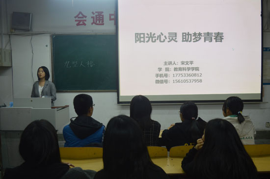 为进一步提高老员工的心理素质,促进同学们的身心健康和谐,宣传普及心理健康知识,深入开展心理健康教育,10月14日mk体育心理部于A104教室举办“阳光心灵 筑梦青春”活动,公司有幸邀请教科院冯春晖、宋文平研究生学姐担当主讲人,2019级同学积极参与其中。
