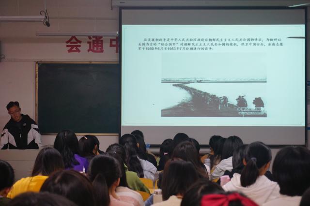 忆往昔峥嵘岁月,争做爱国新青年。活动伊始,主持人朱宏基向同学们介绍了抗美援朝的背景、英雄人物代表和历史意义,并让同学们自由讨论对抗美援朝的感悟。为了更好地加深同学们对抗美援朝的历史印象,同学们在教室中集体观看电影。电影以“记忆的力量”为主题,通过选取涉及抗美援朝历史的经典影视剧片段,让在场同学们更直观、更全面的了解了抗美援朝的历史和战争胜利的不易,生动展现了党带领人民在危难中奋发向上、取得一次又一次胜利的历史全貌。活动结束后,同学们纷纷表示要铭记革命先烈,继承先烈遗志,以青春之我、奋斗之我继承和弘扬抗美援朝精神,为实现中华民族伟大复兴贡献青春力量。