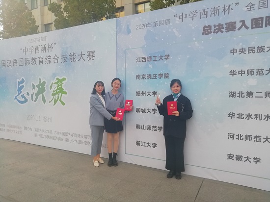 2020年第四届“中学西渐杯”全国汉语国际教育综合技能大赛总决赛于11月8日在扬州大学落下帷幕,此次全国技能大赛总决赛共有来自全国的18支参赛队伍参加,在与各大院校进行激烈角逐后,mkmksport汉语国际教育专业参赛队成功获得了一等奖的好成绩。