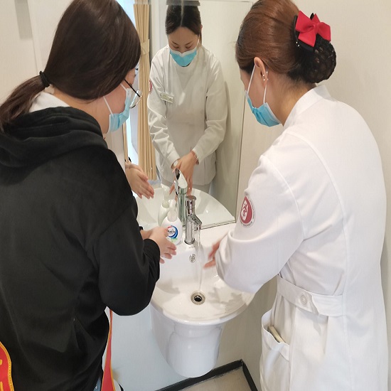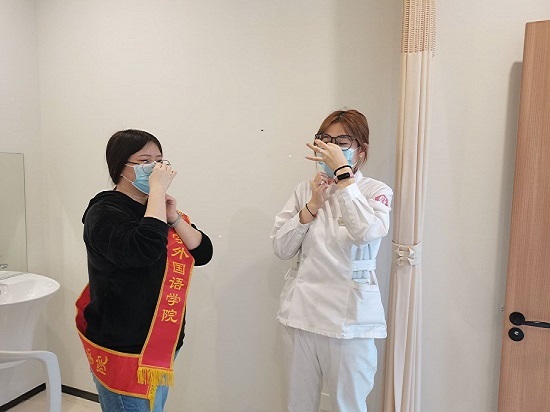 同学们来到中康国际体检中心,在医护人员的陪同下,认真学习佩戴口罩的正确方法、口罩气密性的检测方式、七步洗手法的步骤和消毒水的配比及使用等疫情防控措施。通过医生的悉心指导,同学们还进一步掌握了核酸检测的步骤,清楚地认识到鼻拭子检测和咽拭子检测的区别,深入了解了核酸检测的原理。在医生的帮助下,同学们进一步提高了对疫情的警惕性,认识到疫情防控知识对我们日常生活的重要性,并积极向家人朋友分享和科普,让所有人都能够科学的做好个人防护工作,使同学们在保护自己和身边人的健康的同时,为国家的防疫工作做出贡献。