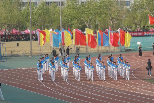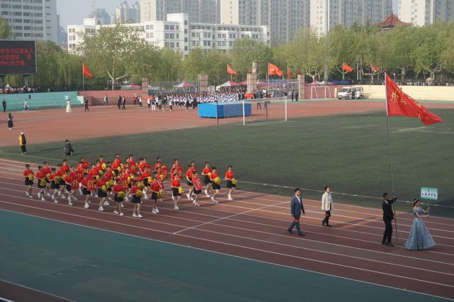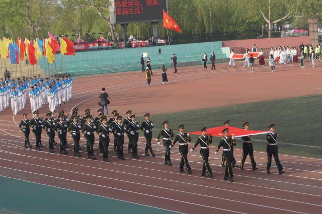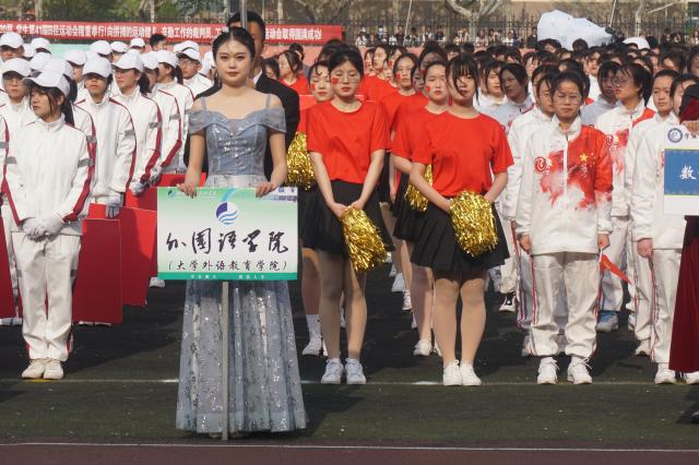 由员工组成的方队依次入场,他们步伐齐整,以沉健有力、朝气蓬勃的姿态走过主席台,乾坤可揽,日月可旋,少年之行,未来可期。八时整,伴着熟悉的“运动员进行曲”旋律的响起,国旗和运动会会旗在仪仗队护卫下率先入场,鲜花方阵队、彩旗方阵队及员工代表队也脚步稳健地步入运动场。运动员们昂扬的斗志、饱满的状态、勃发的英姿唤起了观众们的热情,掌声、欢呼声不绝于耳,在校园上空回响。文公司仪仗队成员身着汉服,在春日暖阳下翩翩起舞,赢得观众阵阵掌声,展现出华夏大地的人杰地灵与深厚的文化内涵。体育公司在观众的注目中,红、黄、紫六头舞狮随着鼓点的轻重缓急,彼此或交织争斗,或跳跃翻转。将中国传统艺术表现得淋漓尽致。mk体育手举标语牌“会通中外,信达天下”,斗志昂扬地向主席台走来,将“学好外国语,做好中国人”的理念表现得淋漓尽致。